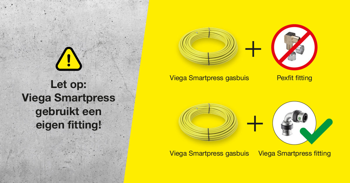 Viega Smartpress is net als Pexfit te gebruiken voor zowel water-, cv- als gasinstallaties. Smartpress biedt daarnaast echter nog meer voordelen. Zo wordt de gele Smartpress G -buis gecombineerd met Smartpress-fittingen 20, 25 en 32 mm met een geoptimaliseerde constructie. Deze constructie is bepalend voor de geringe drukverliezen die het Smartpress-systeem kenmerken.
